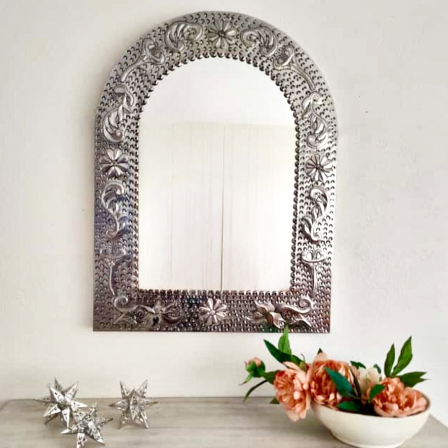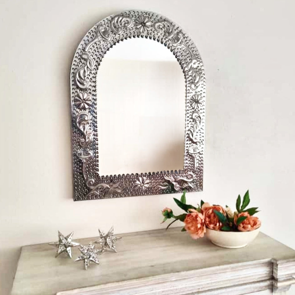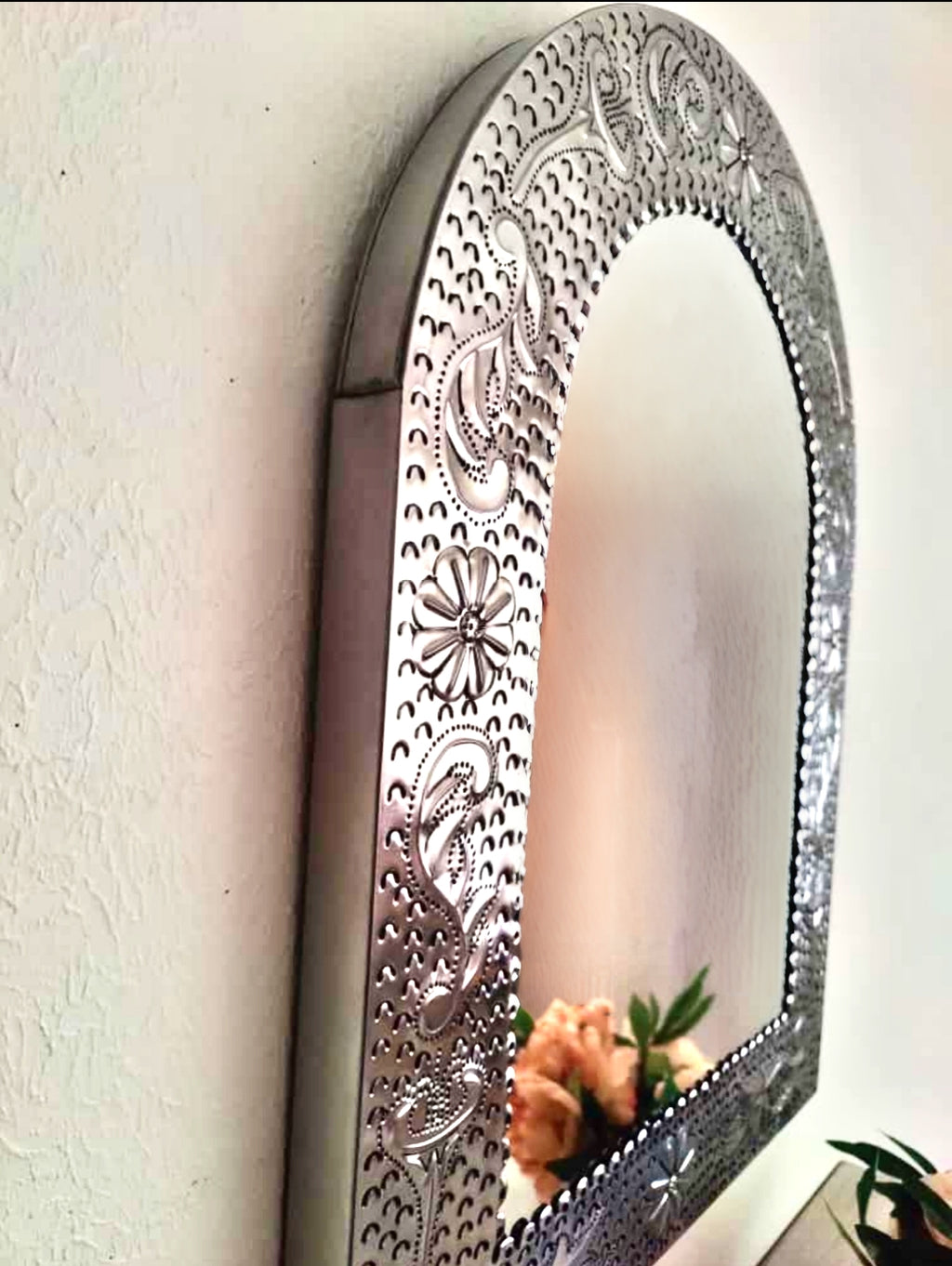 A timeless and elegant piece. Each section of this artisanal mirror is carefully handcrafted to perfection. Hang it in your living room, family room or bedroom and see how it adds charm and a touch of art to any space. Handmade in San Miguel de Allende by generations of talented artisans.