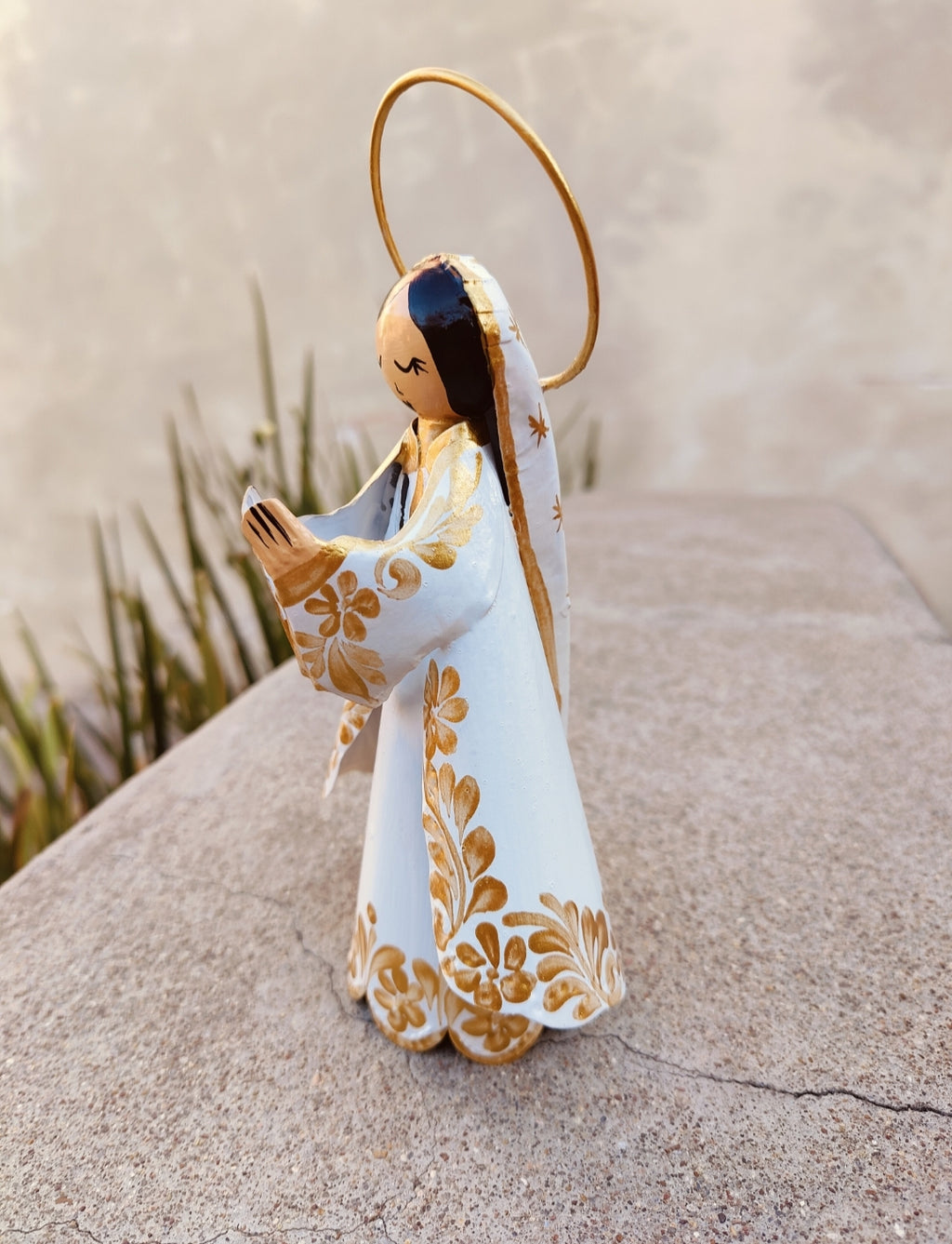 This holiday add this elegant, handmade virgin to your Christmas décor. Hand painted and handmade by artisans in San Miguel de Allende.