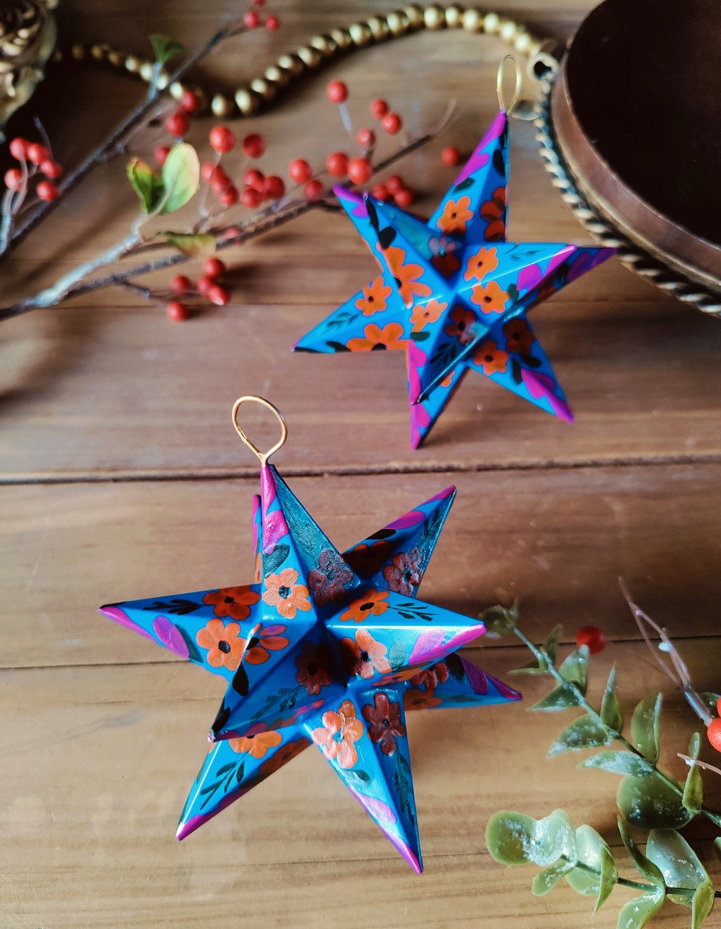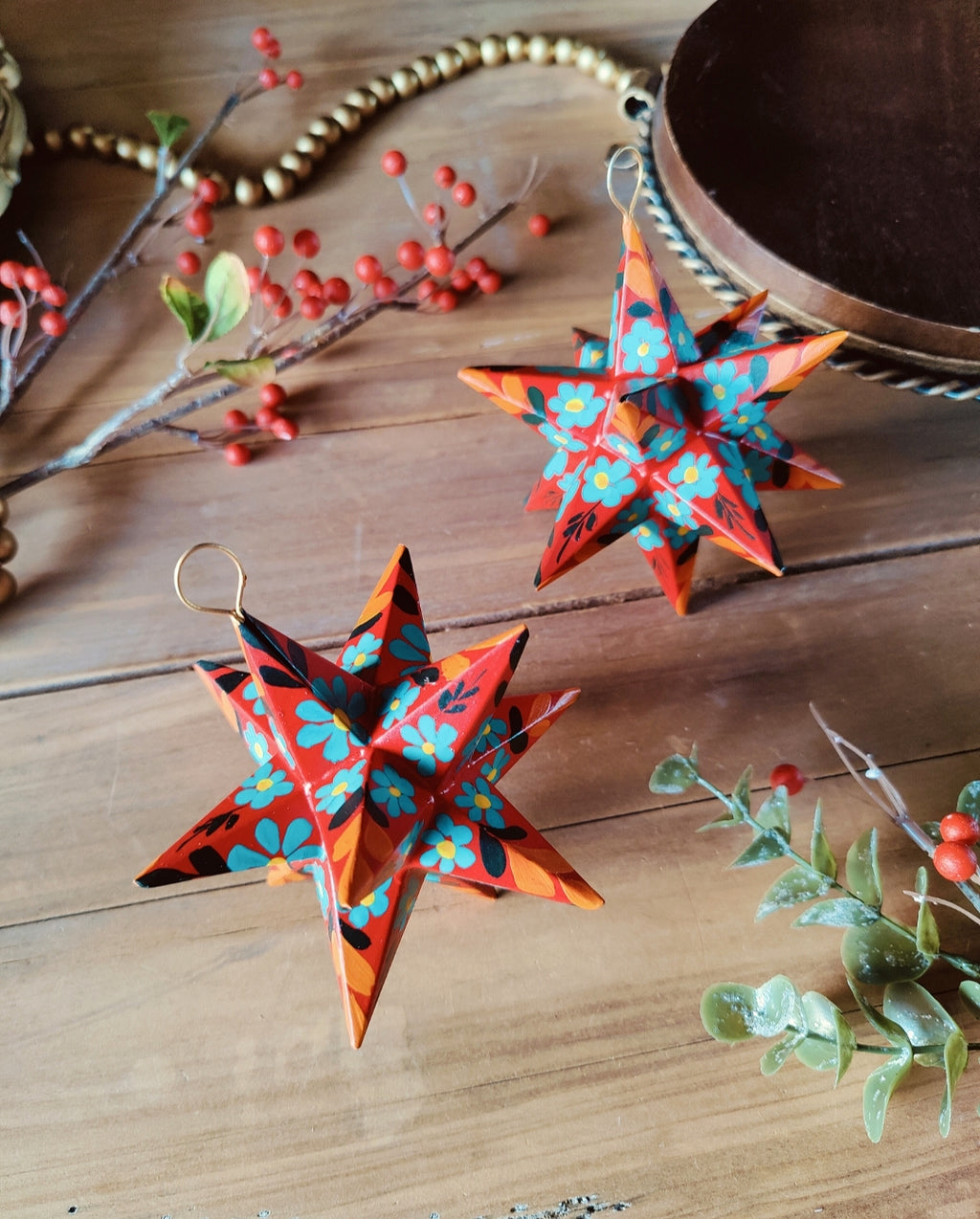 Let this stunning, hand-painted piece of art adorn your Christmas tree this year. Such a fun and unique ornament for the holidays. Choose your favorite color or mix and match a pair or two.