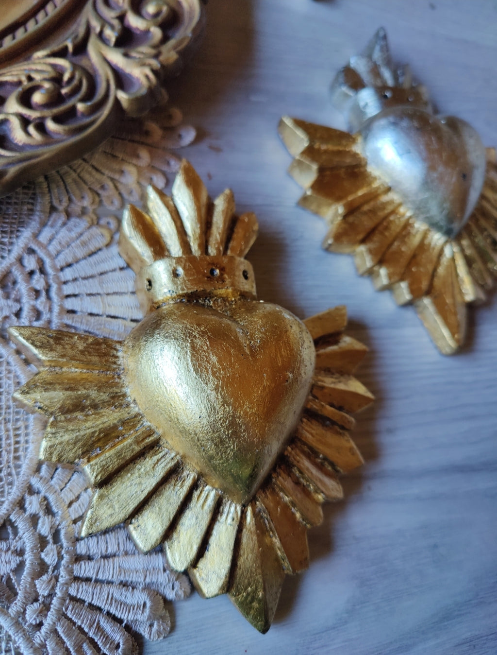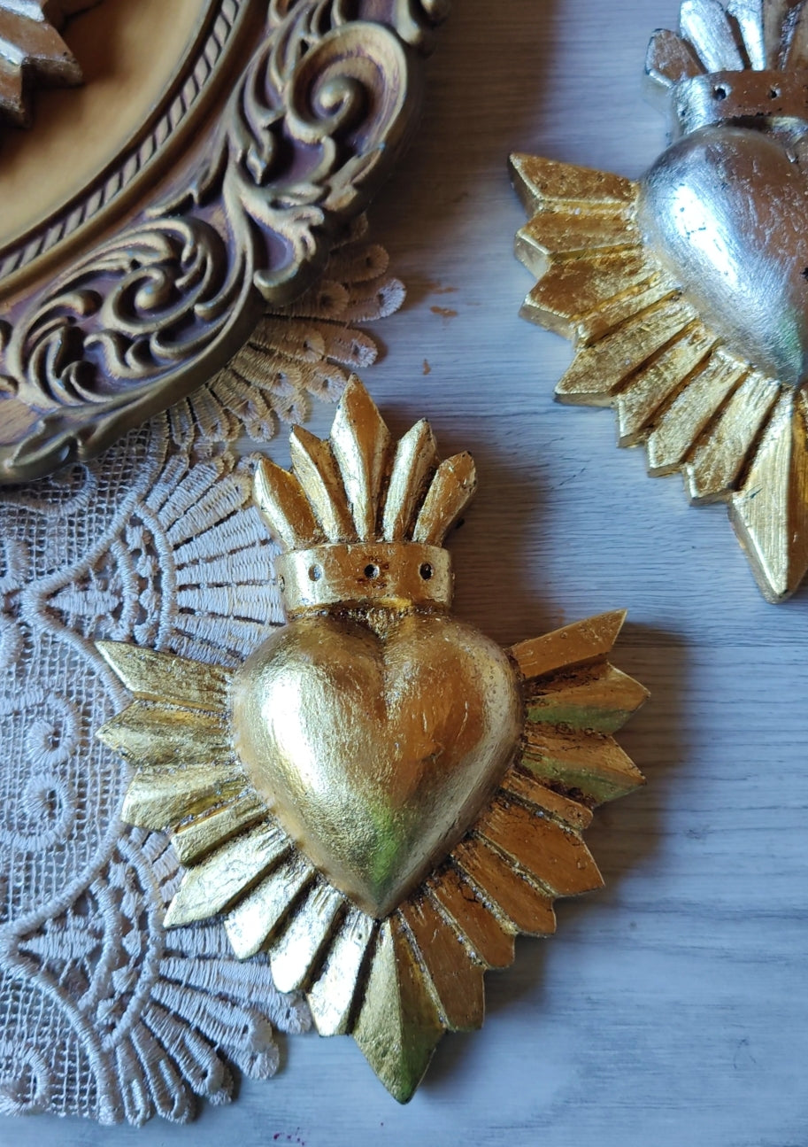 Each piece carries natural variations in carving and leaf application, making every heart truly one of a kind.