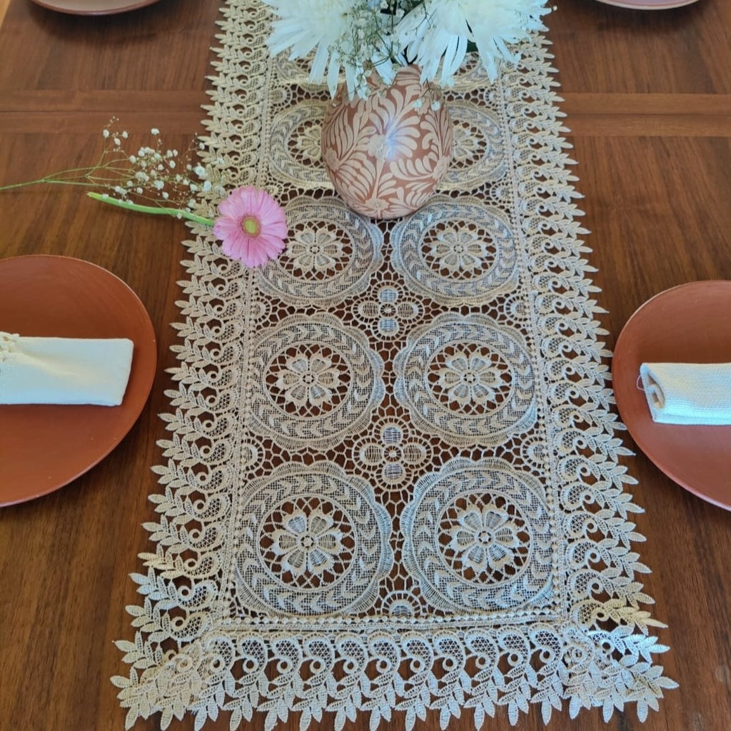 These elegant, embroidered runners are made by hand in Aguascalientes, Mexico. Each one is carefully crafted to have such intricate and beautiful designs.